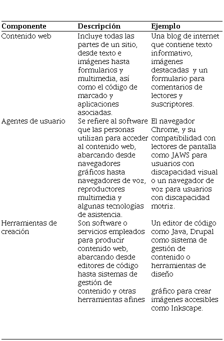 Venegas y Mancilla (2005) destacan que una página web diseñada de manera accesible garantiza la disponibilidad para todos los usuarios. Esto significa que las soluciones destinadas a mejorar el acceso para personas con discapacidad visual pueden servir también como base para interfaces sonoros, especialmente relevantes en dispositivos móviles. Además, el texto descriptivo de videos o audios puede ser una herramienta importante para usuarios sin discapacidad al buscar información.