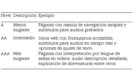La WAI clasifica las páginas web en tres niveles de accesibilidad (Web Accesibility Initative, 2020):