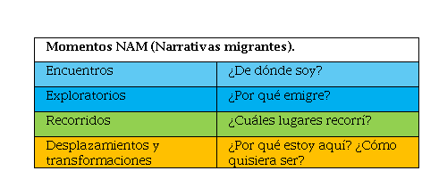 Momentos de la estrategia NAM (Narrativas migrantes)