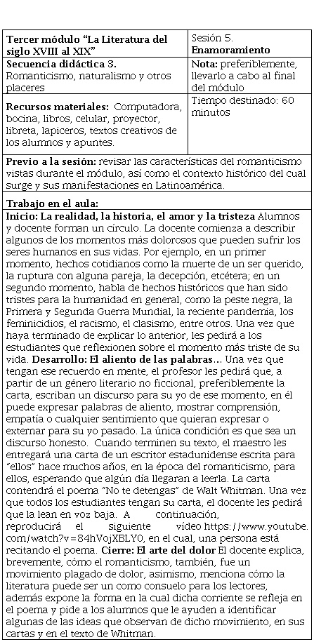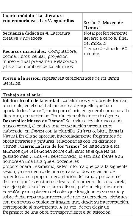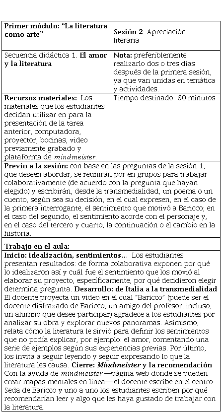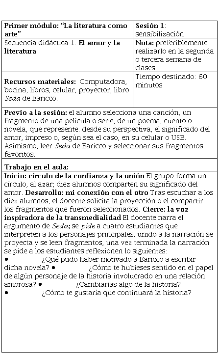 In Mexico, both change and improvement in the teaching and learning of literature are urgent. The current teaching practice suffers a delay due to the use of a system that was designed for other types of societies, more industrial and less technological, this negatively impacts not only the teacher but also the way in which the student perceives the different knowledge, in view of the above, a didactic proposal for the classroom is presented here, which consists of eight sessions designed to complement the subject of Literature, since the study focused on the upper secondary level, specifically, on high school students of fourth semester of the high schools incorporated into the Universidad Autónoma del Estado de México. This proposal has didactic strategies inspired by literary education and transmedia narratives—concepts that are also explained in the article—as well as by the different authors who have worked on them, such as Cecilia Bembibre, Teresa Colomer, Federico Altamirano, Carlos Scolari, among others, however, it is worth mentioning that most of them are original ideas, whose objective is to promote a taste for reading literary texts through novel and not so traditional strategies. It is also intended that the proposal can inspire other teachers and, In addition to taking them to the classroom, ensure that your students enjoy reading, teach in a playful environment since, thinking about it, each session is presented in a more traditional way (beginning, development and closing), but with closer strategies to current reality.