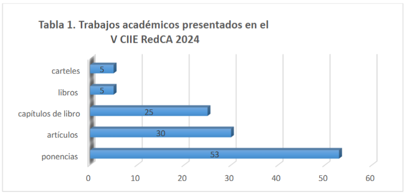 En total, se presentaron 118 trabajos académicos, con 53 ponencias, 30 artículos, 25 capítulos de libro, 5 libros y 5 carteles, reuniendo a más de 200 personas entre ponentes y asistentes (Ver tabla 1).