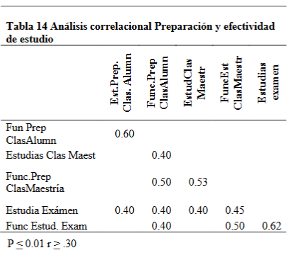 Así mismo, en cuanto a “preparación y efectividad de estudio”, se muestra en el análisis univariado (tabla 3) y correlacional (tabla14) que, solo a los sujetos que estudian conscientemente, les funciona, confirmándose lo mencionado por Juárez, C., Rodríguez, G., et. al., (2016), quienes afirman que no hay estilos o estrategias de aprendizaje mejores o peores, sino que, el éxito se obtiene por la forma en cómo se desarrolla el proceso de aprendizaje. En lugar de hacerlo en forma mecánica, es importante realizarlo en forma consciente, planificada, organizada, controlada, dirigido por un estilo de aprendizaje definido.