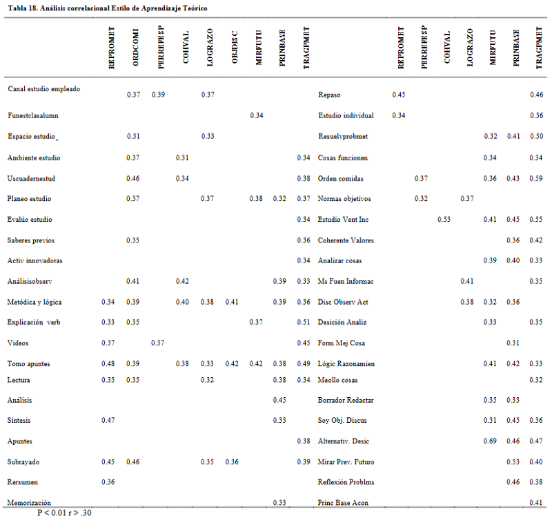 Los sujetos que tienen un estilo de aprendizaje teórico con buen rendimiento académico trabajan en grupo, procurando seguir un método y un orden; miran hacia adelante para prever el futuro. Ante los acontecimientos tratan de descubrir los principios y teorías en que se basan, por lo que están convencidos que debe imponerse la lógica y el razonamiento; resuelven problemas metódicamente, paso a paso. Son congruentes con sus criterios y valores, tienen principios y los siguen. Son algo objetivos en las discusiones y se relacionan con personas reflexivas.