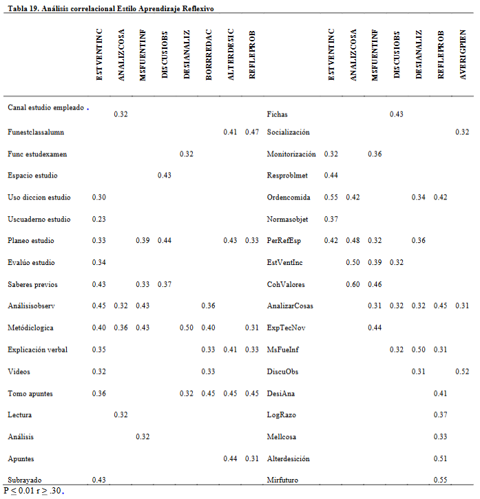 Los sujetos que tienen un mayor rendimiento académico reflejan un estilo de aprendizaje reflexivo. Aprenden mejor con actividades metódicas y analíticas; encajan con personas reflexivas. Resuelven problemas con un método y planean lo que van a estudiar. Examinan su saber previo sobre el tema que abordarán y evalúan lo estudiado para constatar lo aprendido. Son coherentes con sus principios y valores. Antes de tomar una decisión estudian ventajas e inconvenientes. Siguen un orden en las comidas, en el estudio y hacen ejercicio diariamente. Buscan imponer la lógica y el razonamiento, por lo que miran hacia adelante para prever el futuro.
