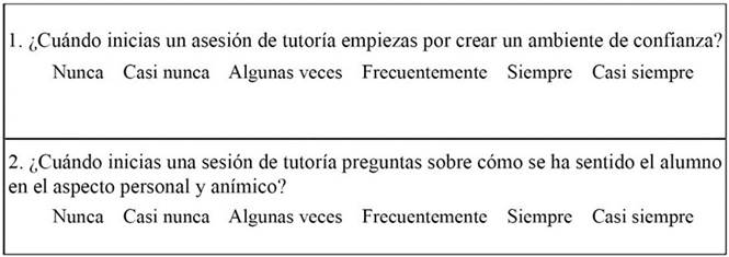 Las dos preguntas están relacionadas ya que si el tutor frecuentemente inicia una sesión de tutoría creando un ambiente de confianza esa confianza va a propiciar que el alumno proporcione información sobre su desempeño personal y familiar.