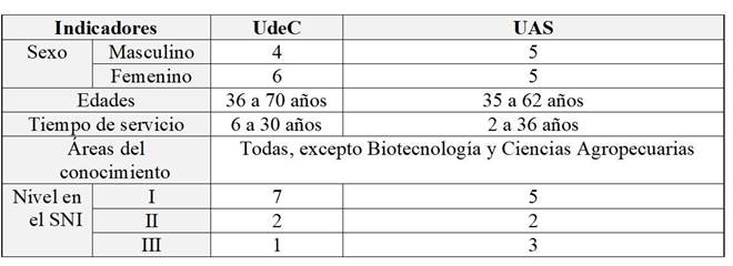 En la selección de los sujetos de estudio se empleó un muestreo intencional (McMillan y Schumacher, 2001) y no de tipo probabilístico, pues se hace hincapié en un grupo específico de sujetos. Siguiendo esta lógica se establecieron tres criterios: 1) que presentaran una contratación de tiempo completo, 2) estuvieran adscrito al Sistema Nacional de Investigadores y 3) contaran con una trayectoria significativa y reconocida. En atención a estas características, en ambas universidades se seleccionaron a 10 académicos: