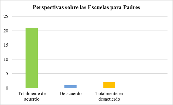 Por último, llama la atención que, en una última pregunta de la encuesta, sobre la perspectiva de las Escuelas para Padres, fueron 2 de los encuestados quienes se manifestaron en total desacuerdo con que participar en una de ellas trae algún tipo de beneficio personal y familiar, como se muestra en la gráfica 4.