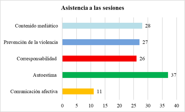 Por lo tanto, la participación y asistencia en un primer momento pudo ser baja debido al poco tiempo con el que se les dio aviso a los padres de la institución sobre la implementación del programa “Familias en Acción”, después hubo una asistencia condicionada y aumentó la participación, a partir de ahí se mantuvo un promedio de padres, esto en contraste con la investigación de Nuño y sus colaboradores, realizada también en Guadalajara, donde los padres desertaron conforme avanzaron las sesiones, hasta quedar el mínimo de ellos.