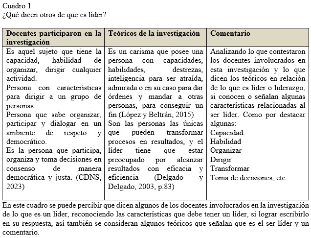 López y Beltrán (2015) El liderazgo es un carisma que posee una persona con capacidades, habilidades, destrezas, inteligencia para ser atraída, admirada o en su caso para dar órdenes y mandar a otras personas, para conseguir un fin. Esta investigación se llevó a cabo en el Centro Universitario UAEM Temascaltepec, extensión Tejupilco, y en la Escuela Normal de Tejupilco (ENT), con el objetivo de conocer si los docentes comprenden el concepto de liderazgo, los estilos de liderazgo, y qué tipo de líderes existen en estas instituciones. Este conocimiento es esencial para mejorar la dirección y organización de las actividades en ambas escuelas, impactando directamente en los procesos de enseñanza-aprendizaje, así como en la evaluación y visualización de resultados.