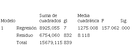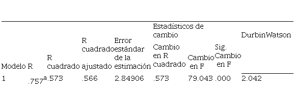 Se realizó un Análisis de Regresión Lineal de prueba de significancia, con el propósito de evaluar la importancia de cada variable independiente en el modelo, obteniendo el valor de R para establecer la relación entre las variables, R2 con el propósito de establecer el ajusta de la VD sobre las VI, y establecer el porcentaje en que influyen las VI sobre la VD, el valor de Durbin-Watson, para establecer el supuesto de independencia, el ANOVA con el propósito de verificar que el modelo sea adecuado, el valor B, t y significancia para establecer el peso de cada una de las variables y la probabilidad, la Tolerancia y el VIP.