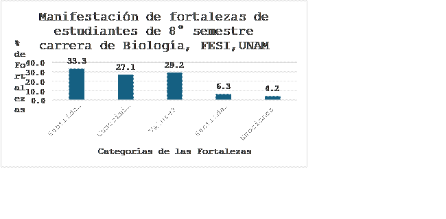 A continuación, se presentarán los resultados de las fortalezas y debilidades manifestadas por los estudiantes de octavo semestre de la carrera de Biología, por categoría primero para las fortalezas y después para las debilidades.