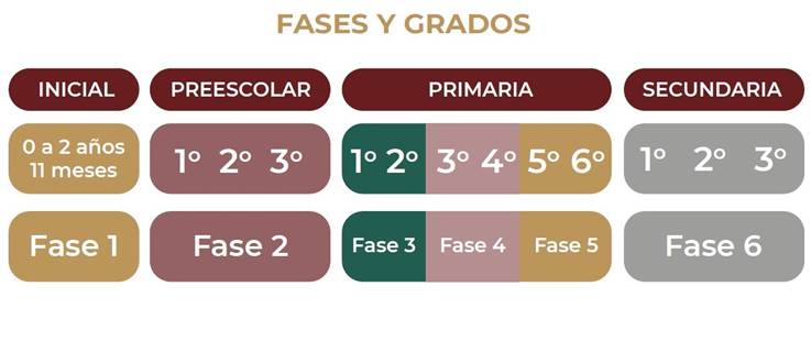 La educación básica en México se divide entre cuatro niveles: educación inicial, preescolar, primaria y secundaria (Ver Anexo 2). La organización curricular del Plan de Estudio 2022 divide la educación primaria en tres fases: fase 3 (primero y segundo grado), fase 4 (tercer y cuarto grado), y fase 5 (quinto y sexto grado). Los contenidos de los programas de estudio de los cuatro niveles de la educación se estructuran en cuatro campos formativos: Lenguajes, Saberes y pensamiento científico, Ética, naturaleza y sociedades, y De lo humano y lo comunitario. El objetivo de esta estructura es propiciar la interdisciplinariedad y terminar con una educación basada en asignaturas “que propicia una fragmentación de la enseñanza y el aprendizaje de los conocimientos” (Secretaría de Educación Pública [SEP], 2022, p. 125). Tanto el Plan de Estudio 2022, como los programas de estudio que de aquel emanan, iniciaron su aplicación en el ciclo escolar 2023-2024 (Diario Oficial de la Federación [DOF], 2023).