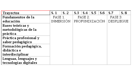 Por lo anterior se hizo un análisis tanto horizontal como vertical de cada una de las mallas en las que se participó, es decir, de manera horizontal se entiende la fase en la que está ubicada la asignatura, con respecto a la verticalidad, es decir, el trayecto en el que se encuentra y el semestre en el que se imparte (ver tabla 1).