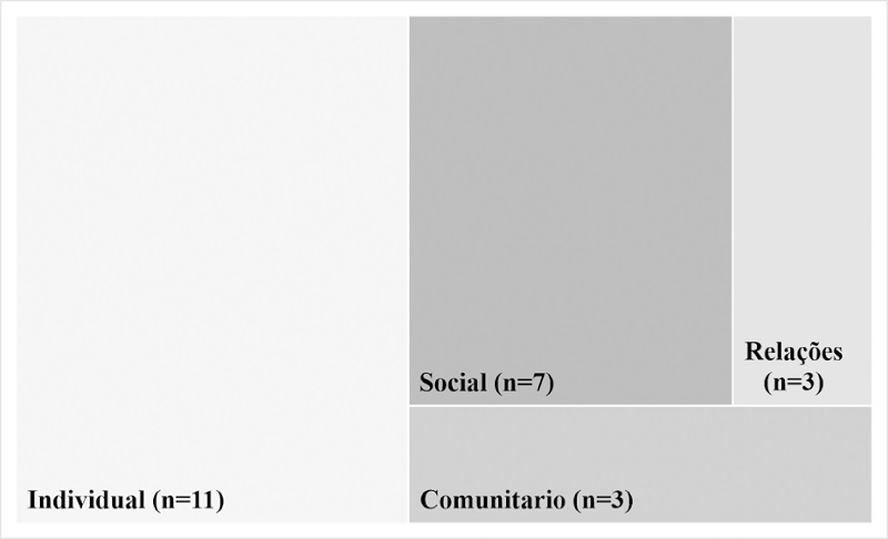 Nível relacional: neste nível foram identificados três elementos e integrados em dois categorias, sendo a mais relevante a falta de uma rede de apoio efetiva.