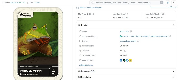 ETHERSCAN. Token Nemus Genesis Collection. [S. l.]: Etherscan, [2023]. Disponível em: https://etherscan.io/token/0xd6ACD704F1d8E007D934e1Ec64838aF3C8818015. Acesso em: 3 dez. 2023.