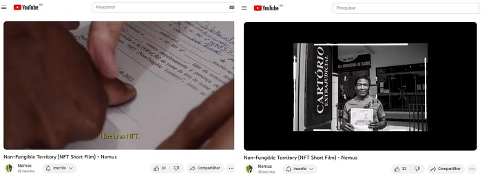 NON-FUNGIBLE territory (NFT Short Film) – Nemus. [S.l.: s.n.], 2023, 1 vídeo (3 min.). Publicado pelo Canal Nemus. Disponível em: https://www.youtube.com/watch?v=HlVD4qmowqI. Acesso em: 13 nov. 2023.