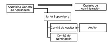La entidad en el marco corporativo de la ley de compañías debe precisar de los tres órganos: Propiedad u Órgano de Gobierno; Órgano de Administración y Órgano de Fiscalización. Así mismo se tiene la Estructura de Gobierno Corporativo: Junta General o Asamblea de Accionistas (órgano superior de una entidad, organización o empresa; su principal función es el nombramiento de auditores externos, aprobar políticas remunerativas de la parte administrativa y directiva, políticas de recompra de acciones, enajenación, arriendo y pignoración de activos. Este eje estará regulado por un reglamento, en el cual enfatizará el control de decisión y responsabilidades) y Directorio (encargado el direccionamiento estratégico de la entidad y su función administrativa, su oficio es ser el vínculo entre la gerencia y la propiedad, al mismo tiempo, su función busca orientar y supervisar que se efectúe con el objeto social sin perder la satisfacción de las partes interesadas en una visión de sostenibilidad a largo plazo). El directorio tendrá criterio independiente y será nominado por la Junta. El tamaño de este se establecerá en base a las necesidades, sin embargo, lo recomendable es manejar un mínimo de cinco y máximo 11, con criterio impar en caso de decisiones que requieran disruptiva. Según lo dispuesto por la Superintendencia de Compañías Valores y Seguros (SUPERCIAS), mediante las Normas Ecuatorianas para el Buen Gobierno Corporativo, determina que existen 3 tipos de directorios: Directores Ejecutivos (administrativos de alto nivel pertenecientes a la entidad); Directores No Ejecutivos (representantes de paquetes accionariales) y Directores Independientes (sujetos sin ninguna relación con la entidad, su función es la de supervisar las acciones de los directores antes mencionados, asimismo, son los encargados de establecer el paquete remunerativo de los mismos).