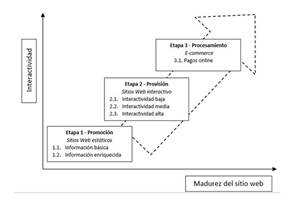 En cuanto al modelo extendido de adopción de comercio electrónico en internet (eMICA), se clasifica en 3 fases (promoción, provisión y procesamiento) con 6 niveles (Información básica, información enriquecida, interactividad baja, interactividad media, interactividad alta y pagos online). La primera fase promoción, consiste en ofrecer informaciones básicas e informaciones enriquecidas al usuario. La segunda fase provisión, consta de 3 niveles (interactividad baja, media y alta). Por último, la tercera fase procesamiento, solo consta de las transacciones en línea a través de la web. (Cerpa, 2007).