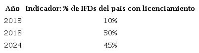 En cuanto a las instituciones formadoras de docentes, el mencionado plan establece metas sobre de licenciamiento de los Institutos de Formación Docentes (IFD) del país, como sigue (ver Tabla 1):