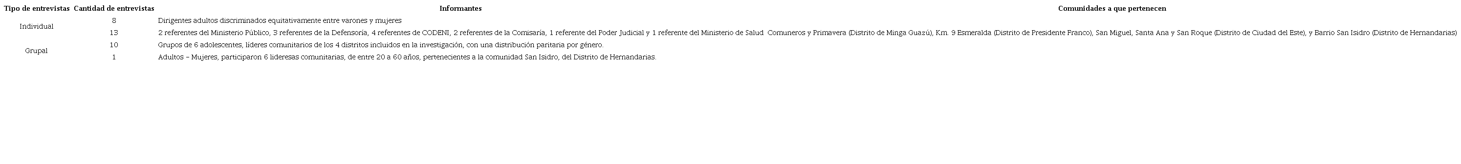La investigación tuvo un enfoque cualitativo, transversal y de alcance exploratorio-descriptivo. Se utilizó la técnica de entrevistas individuales y grupo focal para la recopilación de datos de forma intencional en el 2021. Un total de 32 entrevistas (21 individuales y 11 grupales) a informantes claves, conformada por líderes y lideresas adultos, referentes institucionales y adolescentes (varones y mujeres) fueron realizadas (ver cuadro 1).