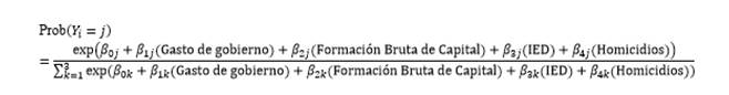 La regresión logística multinomial se estimó utilizando el software GRETL. Este enfoque metodológico complementa el análisis de regresión lineal múltiple al proporcionar una comprensión más profunda de cómo los homicidios y otras variables influyen en la estructura económica y social de los estados mexicanos