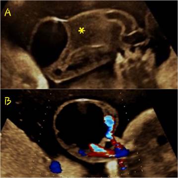 Ante el hallazgo ecográfico del quiste de cordón, el modo 2D debe asociarse con Doppler color para descartar anomalías vasculares y si está disponible se puede usar el modo 3D5,8.