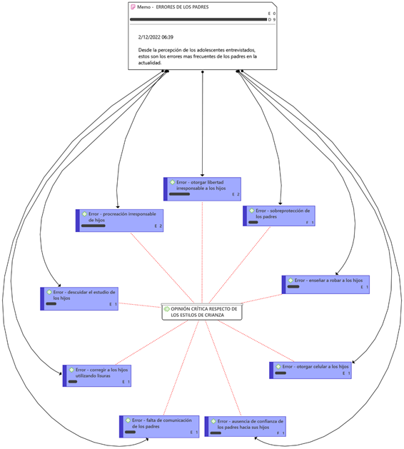 Los entrevistados identifican dos errores comunes en los estilos de crianza: la procreación irresponsable de hijos donde algunos padres traen niños al mundo de manera descuidada y conceder libertad sin responsabilidad a los hijos, lo cual los adolescentes perciben como perjudicial al no establecer límites que eviten decisiones equivocadas. Además, señalan errores como la sobreprotección parental y la falta de confianza mutua entre padres e hijos, entre otros. (ver figura 4).