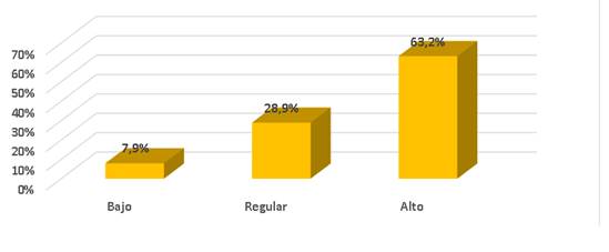 Según lo señalado en el Gráfico 1, el 63.2% de los encuestados consideró que el feedback tuvo un nivel alto. Este resultado indica que la mayoría sintió que el feedback que recibieron fue efectiva, un poco más de la cuarta parte de participantes, sintió que el feedback fue parcialmente efectivo. Se resaltó la dimensión claridad de retroalimentación de esta variable, ya que, según la percepción de los encuestados, esta dimensión presentó un desempeño alto, lo cual se adecuó a los objetivos institucionales de la unidad de análisis examinada.