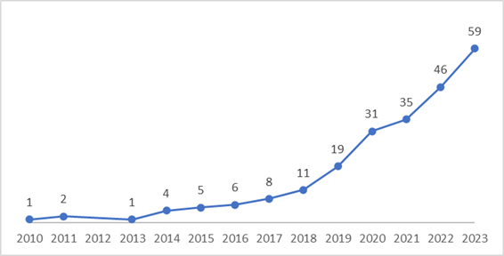 El origen de las publicaciones sobre injusticia epistémica y educación se remonta al 2010, tres años después de la acuñación del término por parte de Miranda Fricker. A partir de 2014, las investigaciones en esta intersección temática evidencian un crecimiento sostenido. Este aumento es consistente con la tendencia general en el uso del concepto de injusticia epistémica en la literatura académica (Báez-Vizcaíno, 2023). Lo anterior parece indicar un interés creciente en abordar las injusticias sociales desde una perspectiva epistémica, incluyendo el campo educativo.
