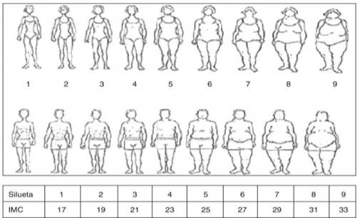 La escala de siluetas de Stunkard presenta ocho figuras corporales, en las que cada figura corresponde a un rango de IMC y su respectivo diagnóstico, los participantes debían marcar aquella con la que se sentían identificados8.