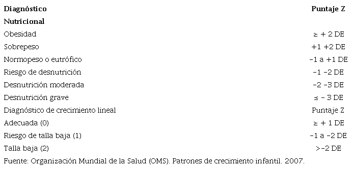 Organización Mundial de la Salud (OMS). Patrones de crecimiento infantil. 2007.