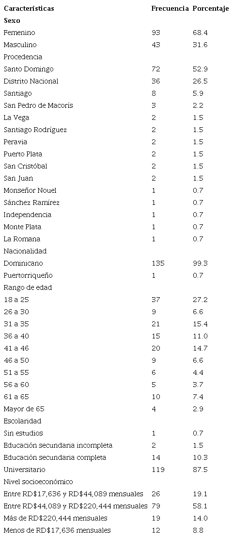 Las características sociodemográficas de los participantes se presentan en la Tabla 1.