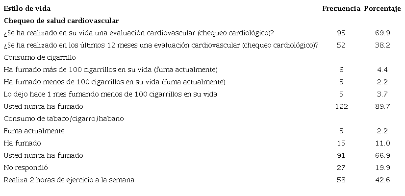 Palabras claves: Hipercolesterolemia, salud, ingestión de alimentos, tabaquismo, ejercicio físico.