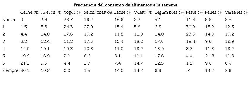 La dieta juega un papel importante en la salud cardiovascular de las personas, ya sea asociada a la ingesta de flavonoides, leche o derivados lácteos y omega-3 que modulan el microbioma intestinal, generan un efecto antiinflamatorio10-12, sirven de precursores del óxido nítrico que favorece la relajación de los vasos sanguíneos13, sin embargo, la prevalencia de una dieta saludable en los individuos varía dependiendo de la edad de este, entre otros variables sociodemográficas7, dichos resultados han sido observados en nuestro estudio donde predomino la ingesta de productos cárnicos, aunado a baja ingesta de productos lácteos y legumbres. Aun siendo recomendado una ingesta conmensurada de productos cárnicos con el objetivo de favorecer una mejor salud cardiovascular2 observamos la ingesta de carnes y embutidos elevada, siendo una práctica dietética no favorable para la salud cardiovascular.