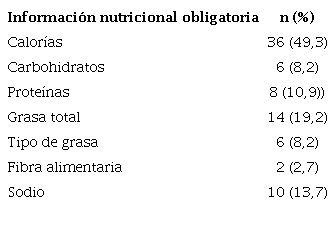 Las informaciones declaradas por el etiquetado nutricional de alimentos consideradas mayor interés por la muestra al momento de la lectura fueron en orden: los valores aportados de calorías, grasa total, sodio, proteínas, carbohidratos y tipo de grasa, y, por último, la fibra alimentaria (Tabla 2).