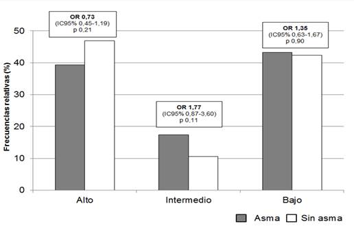 Los asmáticos con obesidad (OR 1,9; IC95% 1,1-2,6) y de edad avanzada (OR 1,3; IC95% 0,5-2,2) presentaron mayor riesgo de AOS que el grupo control (p < 0,001). No se constataron diferencias significativas en la tasa de riesgos al comparar los diferentes perfiles clínicos del grupo de pacientes con asma.