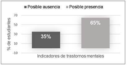 El 65% de los estudiantes presentó una puntuación en el cuestionario GHQ-12 de ≥12, que se interpreta como “presencia” de posibles trastornos relacionado a la salud mental. Ver Figura 1.