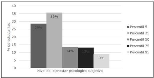 El 65% de los estudiantes presentó bienestar psicológico por debajo del p25. Figura 2