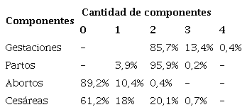 La mayoría (85,7%) de las gestantes había tenido dos embarazos y dos partos (95,9%) incluyendo el actual. El 89,2% no tuvo abortos previos y el 27,3% (155) tuvo alguna cesárea previa. Si se incluyera el parto actual este porcentaje aumenta, ya que el 38,8% (220) había tenido entre una a tres cesáreas (Tabla 4).
