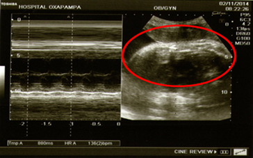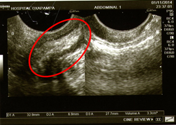 En la hospitalización, luego de aproximadamente 12 horas, se nota quejumbrosa y refiere dolor en flanco derecho, por lo que se decide tomar una ecografía abdominal y transvaginal (Figuras 1 y 2). Donde se llegó a evidenciar: aumento del diámetro apendicular, líquido libre periapendicular e inmovilidad del apéndice.