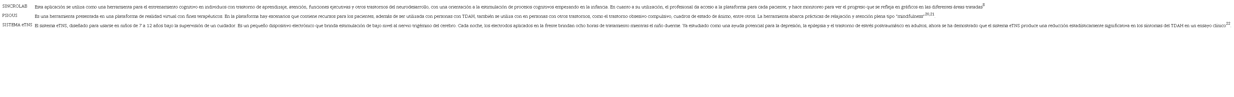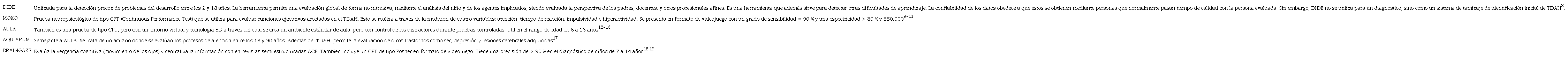 La Tabla 2 resume las principales8 herramientas tecnológicas para intervención terapéutica en TDAH.
