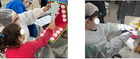 Uno de los pasos más importante de la intervención ha sido la identificación del método de comunicación favorito de una persona con problemas auditivos para entregar en forma efectiva el mensaje a enseñar, que podría ser mediante posters o pancartas, con muñecos, mensajes expresados en una pantalla, folletos u otros15. En esta comunidad, el método favorito fue el de mostrar la técnica de cepillado primero en una maqueta gigante o muñecos de animales que tenían dientes y luego solicitar a los niños repetir la técnica en estos elementos de ayuda, ya que esto llamaba su atención y lucía divertido por lo que repetir el procedimiento ya en boca parecía no ser un acto invasivo ni doloroso. Con respecto al procedimiento de tinción fue siempre bien recibido ya que reían por las manchas bucales de la fucsina y pedían fotos y hacían bromas unos y otros al respecto.
