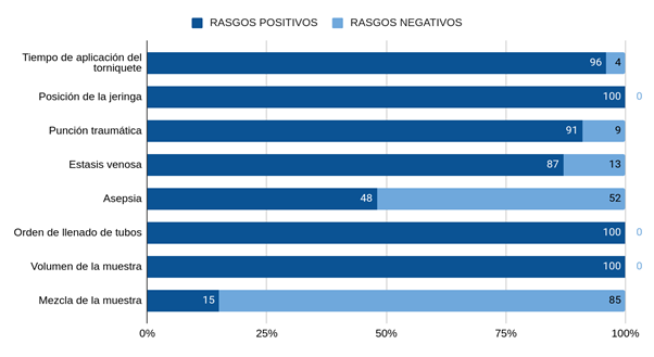 “Todo aquel que manipule muestras debe estar muy atento a cualquier procedimiento que va a realizar” (X). “Siempre procuramos tener cuidado en las verificaciones de materiales antes de empezar con la toma de muestra, vemos los tubos, las medidas, los anticoagulantes, si coagula o no, si se tardó mucho en la extracción de la muestra y si se extrajo de la zona correspondiente, etc.” (OO).