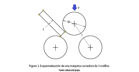 Los aceros de alta resistencia mecánica pueden ser conformados en frío o en caliente, para los cuales existen recomendaciones de sus fabricantes para que no haya excesos que pueda terminar en concentración de esfuerzos los que, a su vez, generan daño en el material. Existen diferentes procesos para doblar los materiales entre los que se encuentra el doblado y el curvado, cada uno de ellos con parámetros a considerar como la relación espesor-ancho. La mayoría de autores mencionan el cilindrado en máquina de 3 rodillos (Figura 3), como una de las mejores opciones [17].