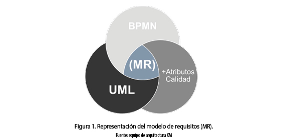 El modelo de requisitos de XM [6] es un compendio de las mejores prácticas en cuanto al modelado de procesos, el levantamiento de requisitos, la recolección de información y la definición de los atributos de calidad. Todo esto, adaptado a las necesidades identificadas durante el desarrollo de los sistemas que actualmente soportan los procesos de la organización y teniendo en cuenta la experiencia de los diferentes proyectos ejecutados a la fecha. Basado en lo anterior el modelo de requisitos permite la gestión del conocimiento de los procesos y la actualización permanente de los mismos y se convierte en el artefacto de registro del conocimiento de la organización.