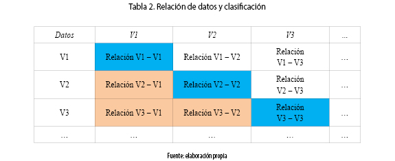 La tabla 2, contiene los datos seleccionados del contexto y las relaciones entre ellos.