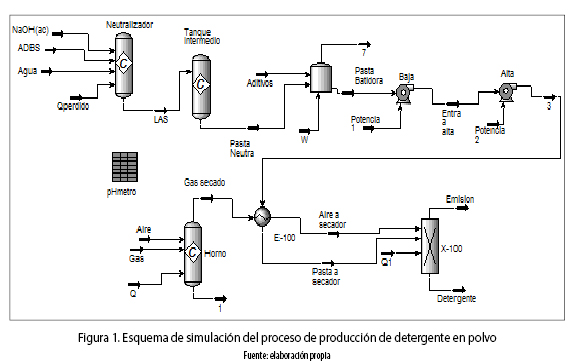 Evaluación del proceso de producción de detergente en polvo a partir de la simulación
