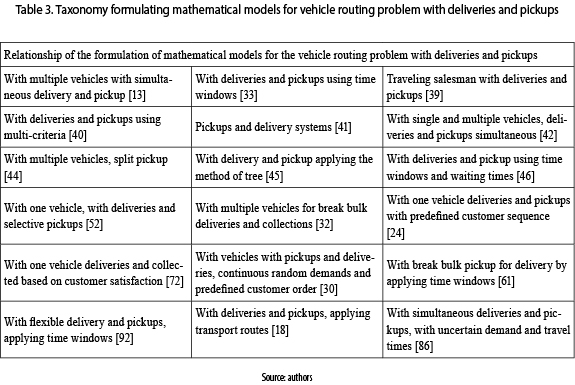 Abstract: It is presented in this review paper, the description of the state of the art of the vehicle routing problem with pickups and deliveries, VRPPD, product obtained from the literature review of most of the models reported in the international technical literature and used for many years by specialized researchers in the field. This classification considers the different solution methods, the treatment of the problem in time and future trends of the same in its formulation and proposal of new methods of solution, as the metaheuristics caused by the complexity of the problem. Finally, several elements are left to make a discussion about existing and available tools for solving this problem