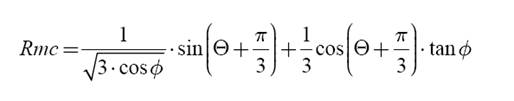 Rmc = es una medida en la forma de la superficie de fluencia en función del ángulo de fricción (ϕ) y el ángulo de Lode (Θ) (ecuación 2).