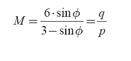 El indicador de falla Φ puede compararse con el parámetro relacionado con el ángulo de fricción máximo movilizado en el espacio de invariantes p-q para el caso axisimétrico representado por el valor de M (ecuación 8).